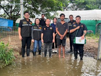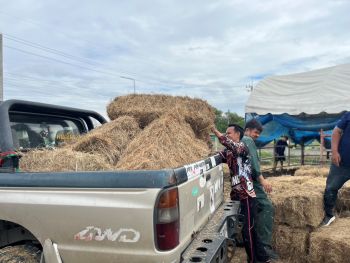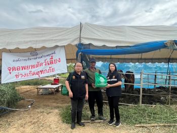 วันที่ 17 พฤศจิกายน 2568 สัตวแพทย์หญิงขนิษฐา ธิติดิลกรัตน์ ปศุสัตว์เขต 1 มอบหมายให้ส่วนสุขภาพสัตว์ และส่วนยุทธศาสตร์และสารสนเทศการปศุสัตว์ร่วมกับสำนักงานปศุสัตว์จังหวัดพระนครศรีอยุธยา และศูนย์วิจัยและพัฒนาอาหารสัตว์ชัยนาท ร่วมส่งมอบเสบียงสัตว์พระราชทาน หญ้าแห้ง จำนวน 5,000 กิโลกรัม ถุงยังชีพ และเวชภัณฑ์ที่จำเป็นเข้าไปแจกจ่ายในจุดอพยพสัตว์ ให้กับเกษตรกร 20 ราย โดยมีจำนวนโค 133 ตัว กระบือ 121 ตัว และแพะ 22 ตัว ในพื้นที่ตำบลลุมพลี อำเภอพระนครศรีอยุธยา จังหวัดพระนครศรีอยุธยา เพื่อบรรเทาความเดือดร้อนและสร้างขวัญกำลังใจให้กับเกษตรกรในพื้นที่ พร้อมให้คำแนะนำด้านสุขภาพสัตว์และการจัดการฟาร์มในสถานการณ์น้ำท่วม ทั้งนี้ยังได้สนับสนุนการอพยพสัตว์ออกจากพื้นที่เสี่ยง พร้อมเฝ้าระวังโรคระบาดสัตว์อย่างใกล้ชิด เพื่อป้องกันการสูญเสียและลดผลกระทบที่อาจเกิดขึ้น โดยสำนักงานปศุสัตว์เขต 1 ดำเนินการตามนโยบายของกรมปศุสัตว์ เพื่อเร่งบรรเทาผลกระทบและฟื้นฟูอาชีพของเกษตรกรให้สามารถกลับมาประกอบอาชีพได้อย่างยั่งยืน ทั้งนี้ เกษตรกรสามารถขอรับความช่วยเหลือได้ที่สำนักงานปศุสัตว์อำเภอ สำนักงานปศุสัตว์จังหวัดทั่วประเทศหรือแจ้งเหตุผ่านแอปพลิเคชัน DLD 4.0 ได้ตลอด 24 ชั่วโมง