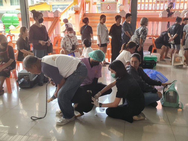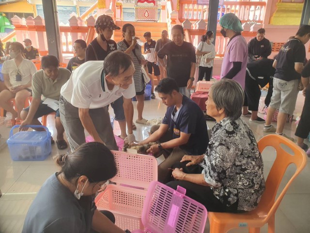 ทั้งนี้ได้ทำการให้ความรู้แนะนำกับผู้เข้ารับบริการในการดูแลสัตว์หลังการผ่าตัดทำหมัน และมอบอาหารสัตว์ด้วย ณ วัดเชิงกระบือ ตำบลบางกรวย อำเภอบางกรวย จังหวัดนนทบุรี