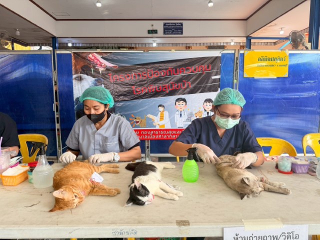 -ผ่าตัดทำหมันสุนัขและแมว จำนวน 45 ตัว แมว เพศผู้ 15 ตัว เพศเมีย 24 ตัว สุนัขเพศ ผู้ 1 ตัว เพศเมีย 5 ตัว