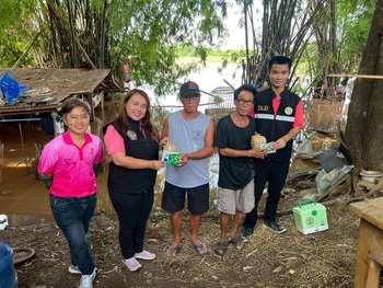 น.สพ.กันตภณ ปภากรเกตุรัตน์ นายสัตวแพทย์ชำนาญการพิเศษ รักษาราชการแทนปศุสัตว์จังหวัดชัยนาท มอบหมายให้นางสาวอัจจิมา ณ น่าน หัวหน้ากลุ่มยุทธศาสตร์และสารสนเทศการปศุสัตว์ นางสาวจรรยาภรณ์ นาคบัว เจ้าพนักงานสัตวบาลชำนาญงาน น.สพ.ชยากร ชื่นตา นายสัตวแพทย์ปฏิบัติการ กลุ่มพัฒนาสุขภาพสัตว์ สำนักงานปศุสัตว์จังหวัดชัยนาท นางสาวสรญา ศักดิ์คำ เจ้าพนักงานสัตวบาลชำนาญงาน สำนักงานปศุสัตว์อำเภอมโนรมย์ ตรวจเยี่ยมและให้กำลังใจและเข้าดูแลสุขภาพสัตว์ของเกษตรกรผู้เลี้ยงสัตว์ที่ได้รับผลกระทบจากอุทกภัย ในพื้นที่ ต.วัดโคก ต.ท่าฉนวน ต.ศิลาดาน อ.มโนรมย์ จ.ชัยนาท เกษตรกรได้อพยพสัตว์ปีก และสัตว์เลี้ยงขึ้นสู่ที่สูง ปัจจุบันระดับน้ำเหนือเขื่อนเจ้าพระยารับน้ำที่ +16.03 และการระบายน้ำใต้เขื่อนเจ้าพระยาที่ 2,400 ลบ.ม/วินาที ทั้งนี้สำนักงานปศุสัตว์จังหวัดชัยนาท ได้ให้คำแนะนำแนวทางการดูแลสัตว์เลี้ยงและการป้องกันโรคระบาดในสัตว์ในช่วงน้ำท่วม พร้อมมอบเวชภัณฑ์ แร่ธาตุ ยาปฏิชีวนะ อาหารสัตว์เลี้ยงเพื่อบรรเทาความเดือดร้อนให้แก่เกษตรกรในพื้นที่ที่ได้รับผลกระทบ