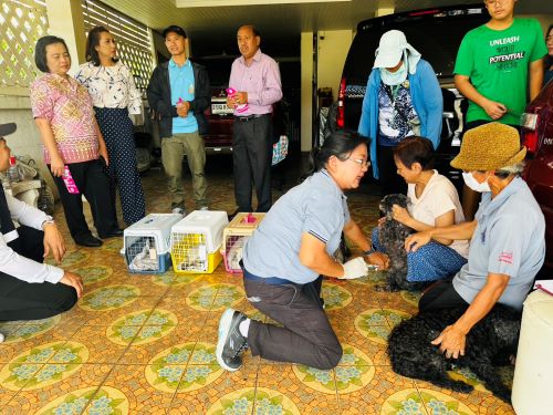 สำนักงานปศุสัตว์จังหวัดปทุมธานี กลุ่มพัฒนาสุขภาพสัตว์ ลงพื้นที่ฉีดวัคซีนโรคพิษสุนัขบ้า ในพื้นที่เทศบาลตำบลลำสามแก้วอำเภอลำลูกกา จีงหวัดปทุมธานี