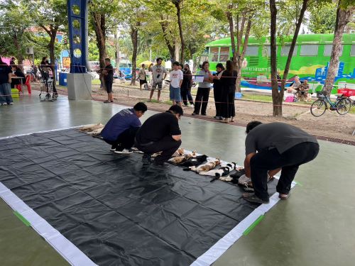 สำนักงานปศุสัตว์จังหวัดปทุมธานี ร่วมกับเทศบาลนครรังสิต ประชาสัมพันธ์ให้ความรู้เรื่องโรคพิษสุนัขบ้า ฉีดวัคซีนป้องกันโรคพิษสุนัขบ้าและควบคุมประชากรสุนัขและแมวโดยการผ่าตัดทำหมัน