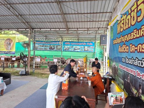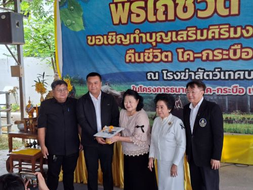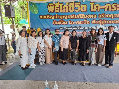 วันที่ 5 ธันวาคม 2568 โดยนายจุลชาติ จุลเพชร ปศุสัตว์จังหวัดปทุมธานี นายปุริษ ออคูณสวัสดิ์ หัวหน้ากลุ่มกลุ่มพัฒนาคุณภาพสินค้าปศุสัตว์ และนายอำนวย ธรรมลังกา ปศุสัตว์อำเภอเมืองปทุมธานี เข้าร่วมพิธีไถ่ชีวิตโคและกระบือ โครงการธนาคารโค-กระบือ เพื่อเกษตรกรตามพระราชดำริ เป็นผู้แทนจากกรมปศุสัตว์รับมอบโคจำนวน 9 ตัว และกระบือ จำนวน 3 ตัว ที่ทำพิธีไถ่ชีวิตดังกล่าวจาก สมาคมศิษย์เก่าบัณฑิตวิทยาลัย มหาวิทยาลัยมหิดล เพื่ออุทิศเป็นพระราชกุศลแด่พระบาทสมเด็จพระบรมชนกาธิเบศร มหาภูมิพลอดุลยเดชมหาราช บรมนาถบพิตร รัชการที่ 9 เนื่องในวันพ่อแห่งชาติ ณ โรงฆ่าสัตว์เทศบาลเมืองปทุมธานี ตำบลบางปรอก อำเภอเมืองปทุมธานี จังหวัดปทุมธานี