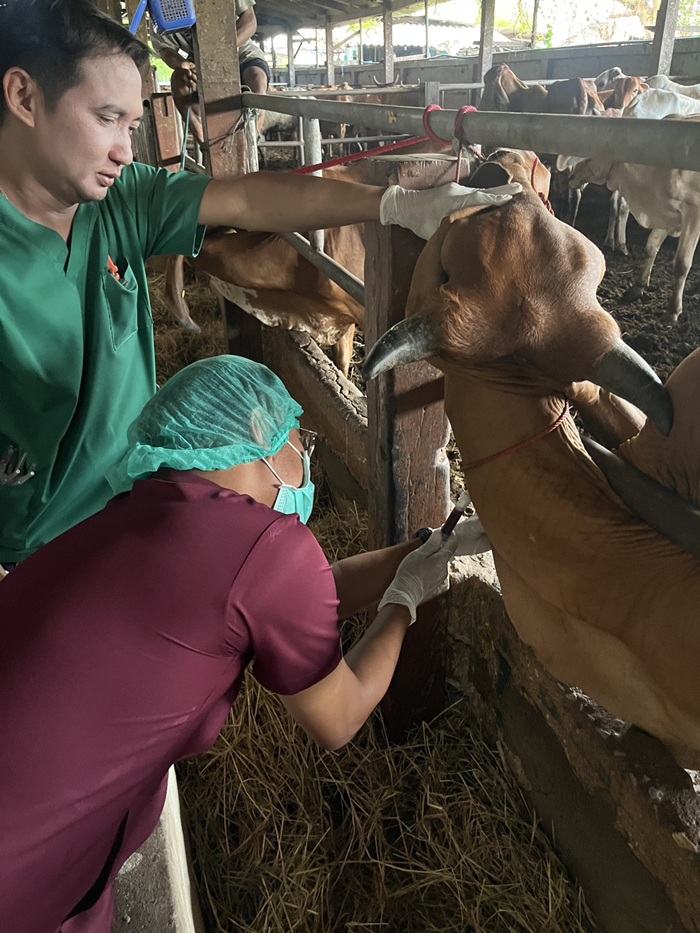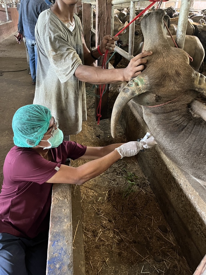 เวลา 08.30 น. ครอบครัวปศุสัตว์พระนครศรีอยุธยา นำโดย นายสัตวแพทย์ บุญฤทธิ์ ทองสม ปศุสัตว์จังหวัดพระนครศรีอยุธยา มอบหมายให้กลุ่มพัฒนาสุขภาพสัตว์ และสำนักงานปศุสัตว์อำเภอพระนครศรีอยุธยา นำเจ้าหน้าที่จังหวัดฯและเจ้าหน้าที่อำเภอฯ เก็บเลือดเพื่อตรวจโรคแท้งติดต่อ ทดสอบโรควัณโรค และฉีดวัคซีนป้องกันโรคปากและเท้าเปื่อย โรคเฮโมราจิกเซพติซีเมีย และโรคลัมปี สกิน ให้แก่โคและกระบือที่เข้าร่วมโครงการธนาคารโคกระบือตามพระราชดำริ ณ รุ่งโรจน์ฟาร์ม อำเภอพระนครศรีอยุธยา เป็น โคจำนวน 23 ตัว และกระบือ 45 ตัว ผลการปฏิบัติงานเป็นไปด้วยความเรียบร้อย