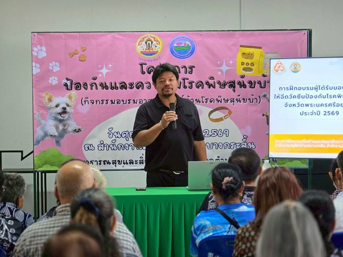 เวลา 09.00 น. ครอบครัวปศุสัตว์พระนครศรีอยุธยา นำโดย นายสัตวแพทย์ บุญฤทธิ์ ทองสม ปศุสัตว์จังหวัดพระนครศรีอยุธยา มอบหมายให้ นายอธิภัทร อุปสาร ปศุสัตว์อำเภอบางปะอิน เป็นวิทยากรโครงการอบรมอาสาสมัครป้องกันโรคพิษสุนัขบ้าประจำปี 2569 ให้กับอาสาสมัครในพื้นที่เทศบาลตำบลบางกระสั้น จำนวน 50 ราย ณ ห้องประชุมเทศบาลตำบลบางกระสั้น