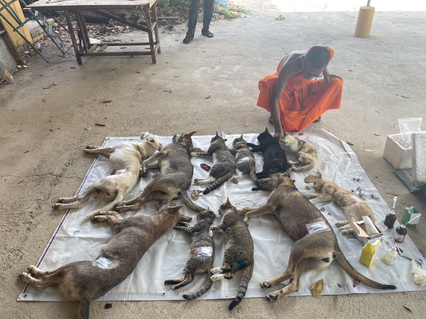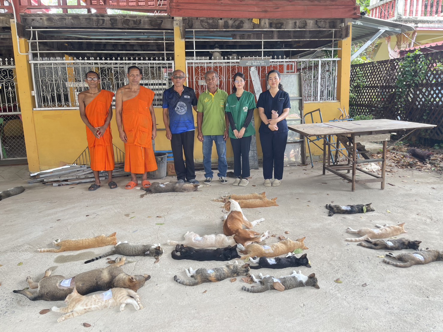 | วันพุธที่ 1 ตุลาคม 2568 นายวิเชียร จารุเพ็ง ปศุสัตว์จังหวัดอ่างทอง ได้มอบหมายให้เจ้าหน้าที่ กลุ่มพัฒนาสุขภาพสัตว์ สำนักงานปศุสัตว์จังหวัดอ่างทอง, เจ้าหน้าที่สำนักงานปศุสัตว์อำเภอไชโยออกหน่วยสัตวแพทย์เคลื่อนที่ผ่าตัดทำหมันสุนัขและแมว ณ วัดชัยสิทธาราม ต.ชัยฤทธิ์ อ.ไชโย จ.อ่างทอง พร้อมทั้งฉีดวัคซีนป้องกันโรคพิษสุนัขบ้า และทำหมันสุนัขเพศผู้ 2 ตัว สุนัขเพศเมีย 3 ตัว แมวเพศผู้ 8 ตัว แมวเพศเมีย 12 ตัว รวมทำหมันสุนัขและแมวทั้งสิ้น 25 ตัว |