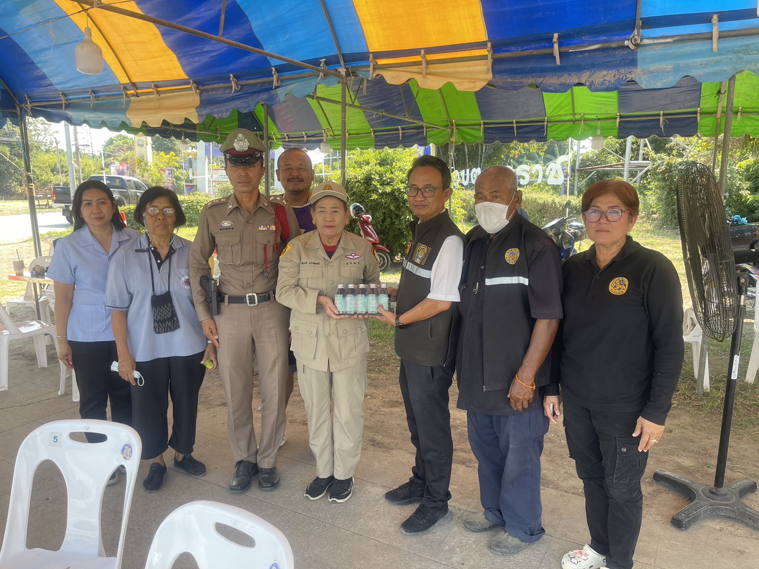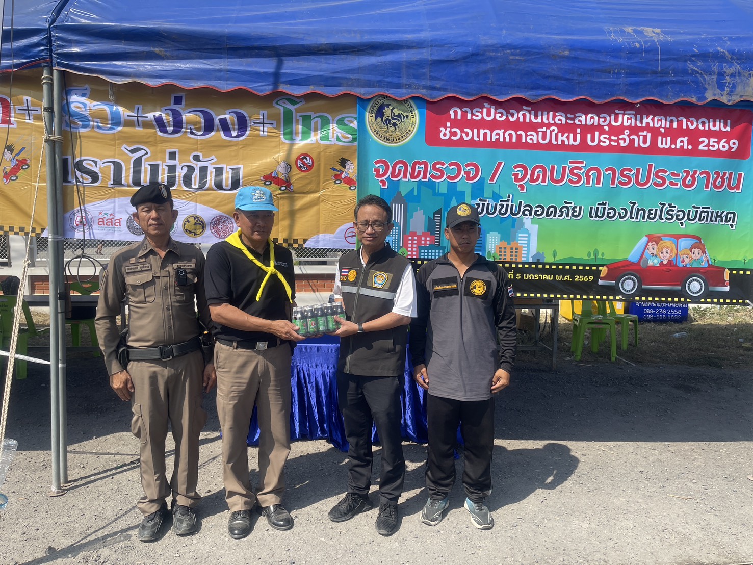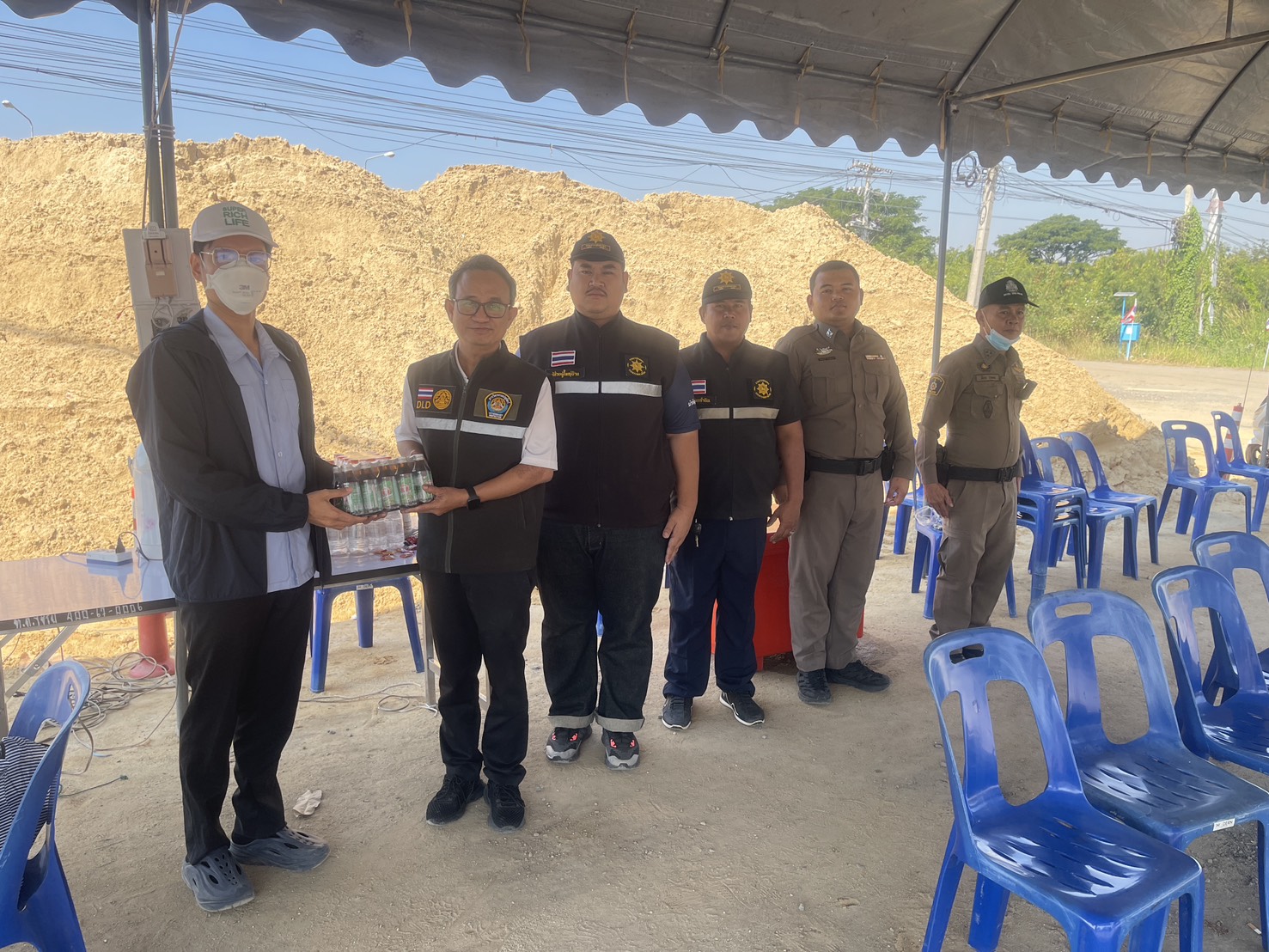 พร้อมมอบเครื่องดื่มสนับสนุนเป็นกำลังใจให้กับเจ้าหน้าที่ผู้ปฏิบัติงาน