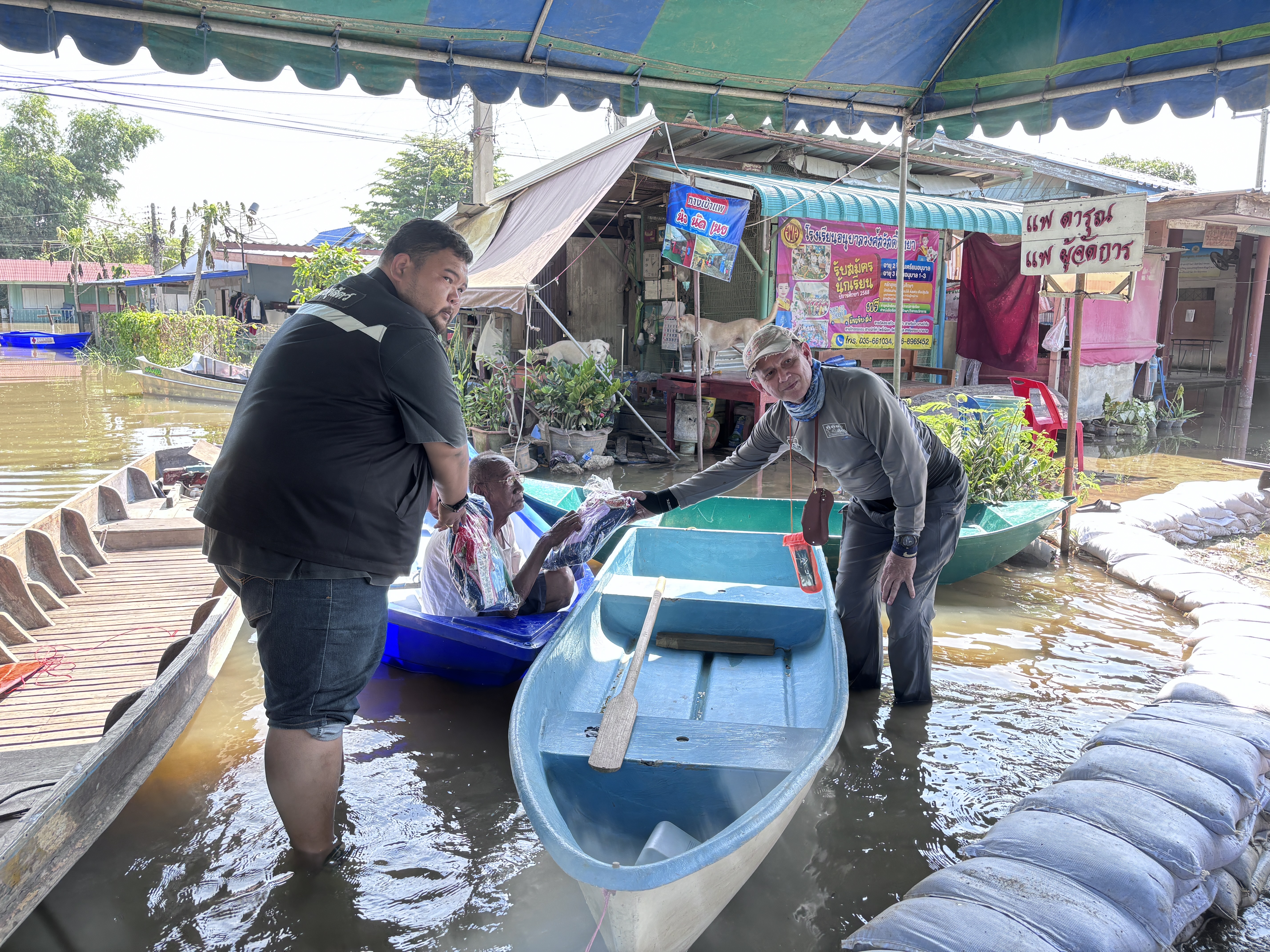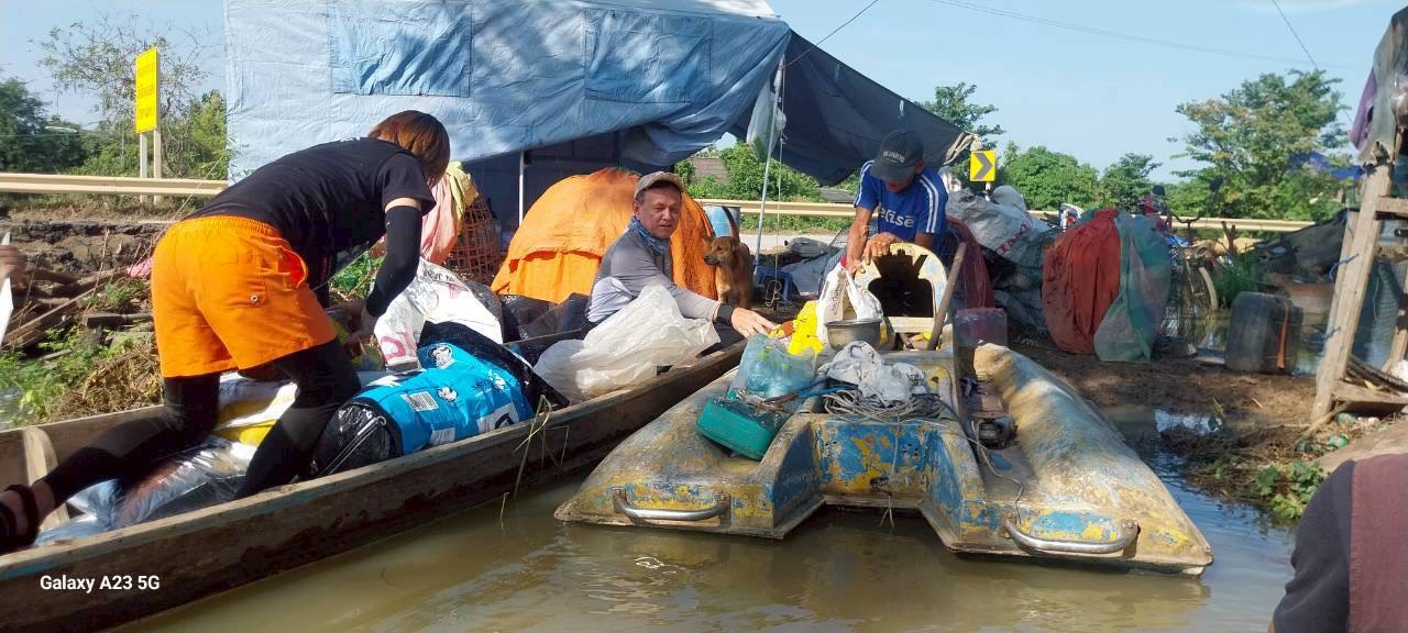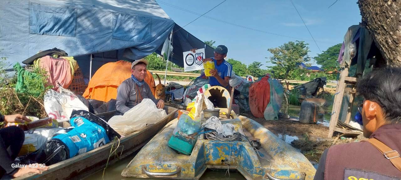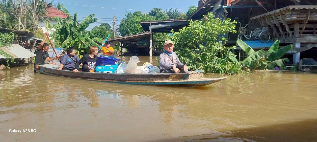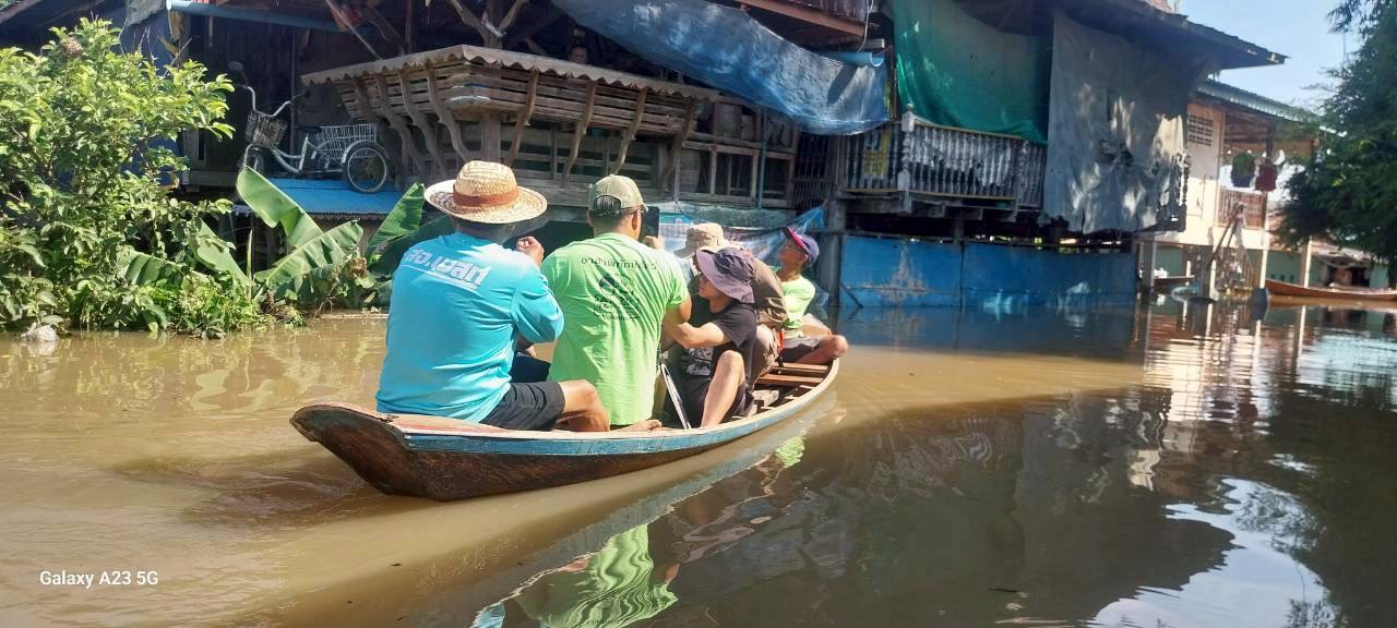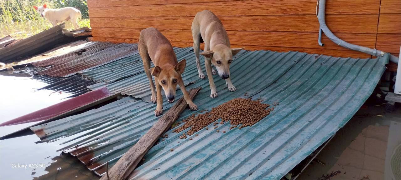 ร่วมกับสมาคมพิทักษ์สัตว์(ไทย) ออกติดตามสถานการณ์น้ำท่วมขัง ในพื้นที่ หมู่ที่ 6 ต.โผงเผง อำเภอป่าโมก จังหวัดอ่างทอง พร้อมทั้งแจกอาหารสุนัขและแมวแก่เกษตรกรผู้เลี้ยงสัตว์
