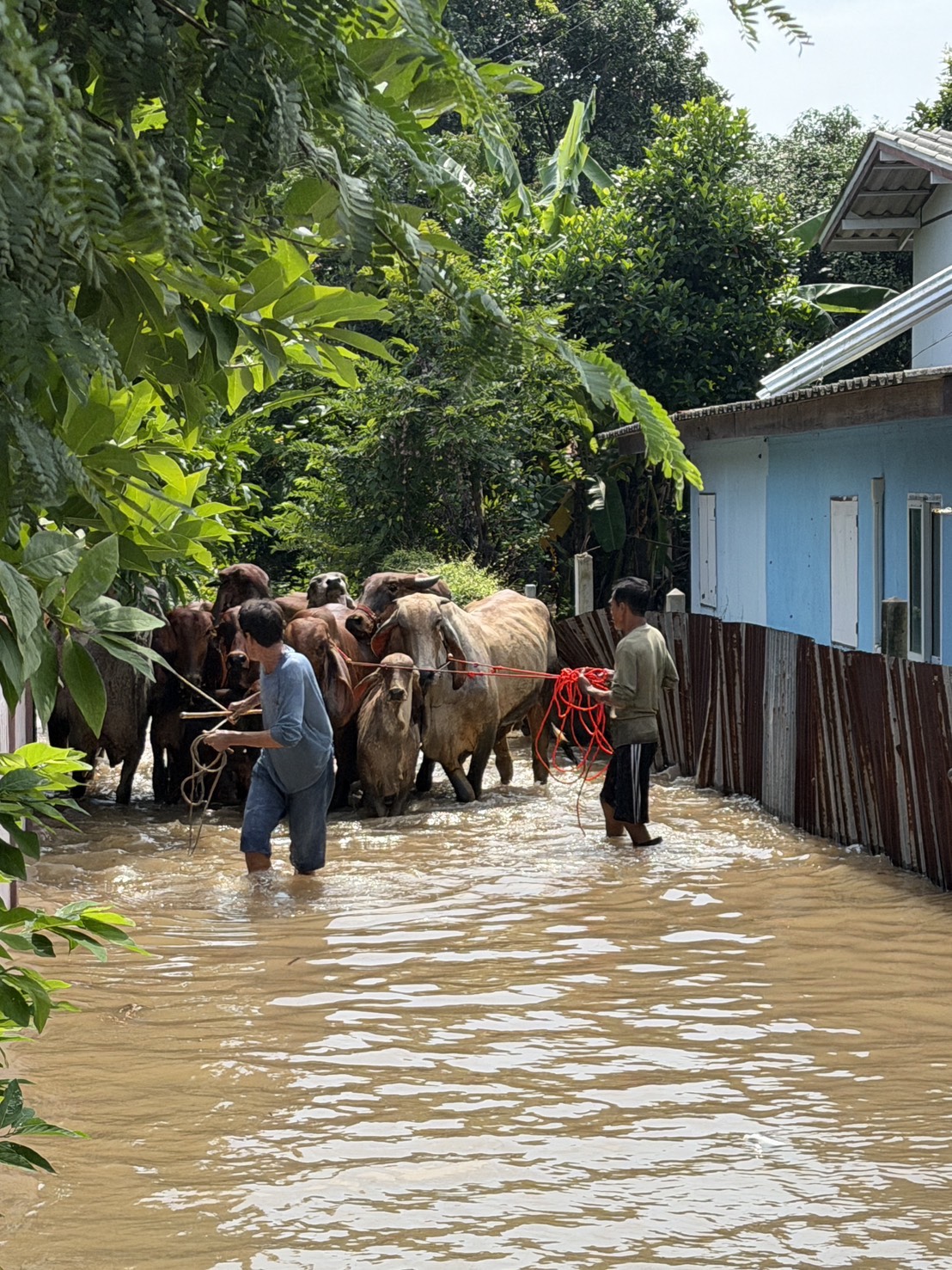 ออกติดตามสถานการณ์น้ำท่วมขัง ในพื้นที่ หมู่ที่1 ตำบลป่าโมกและหมู่ที่ 3,4 ,5 ต.นรสิงห์อำเภอป่าโมก จังหวัดอ่างทอง ตั้งคอกชั่วคราวสำหรับโค ที่ได้รับผลกระทบ