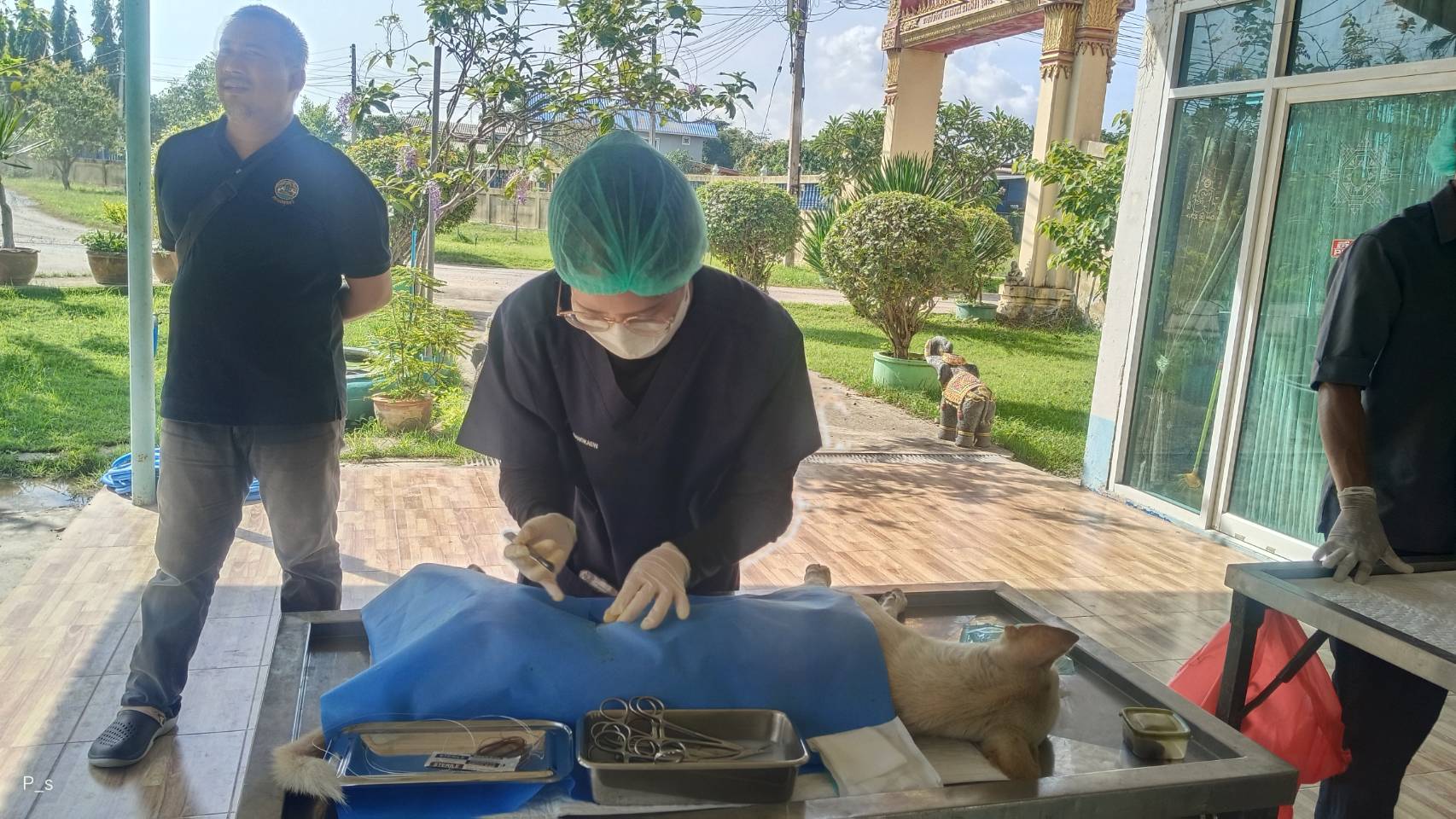วันพุธที่ 12 พฤศจิกายน 2568 นายวิเชียร จารุเพ็ง ปศุสัตว์จังหวัดอ่างทอง ได้มอบหมายให้เจ้าหน้าที่ กลุ่มพัฒนาสุขภาพสัตว์ สำนักงานปศุสัตว์จังหวัดอ่างทอง, เจ้าหน้าที่สำนักงานปศุสัตว์อำเภอไชโย ออกหน่วยสัตวแพทย์เคลื่อนที่ผ่าตัดทำหมันสุนัขและแมว ณ วัดตะเคียน ต.เทวราช อ.ไชโย จ.อ่างทอง พร้อมทั้งฉีดวัคซีนป้องกันโรคพิษสุนัขบ้า และทำหมันสุนัขและแมวในพื้นที่