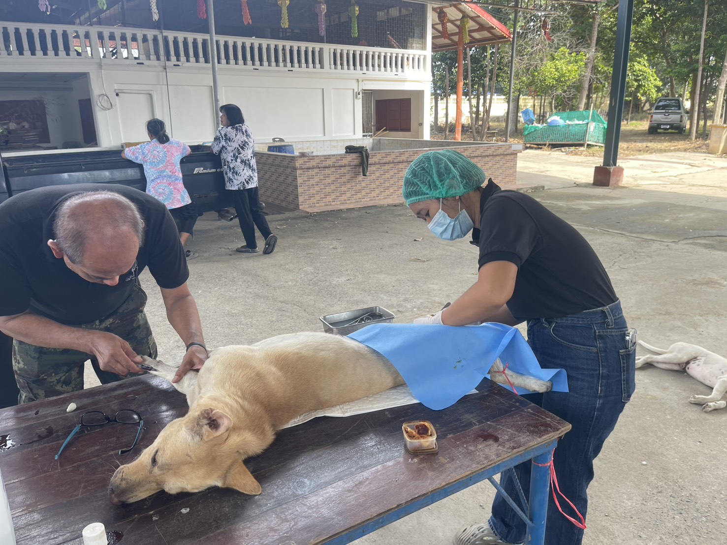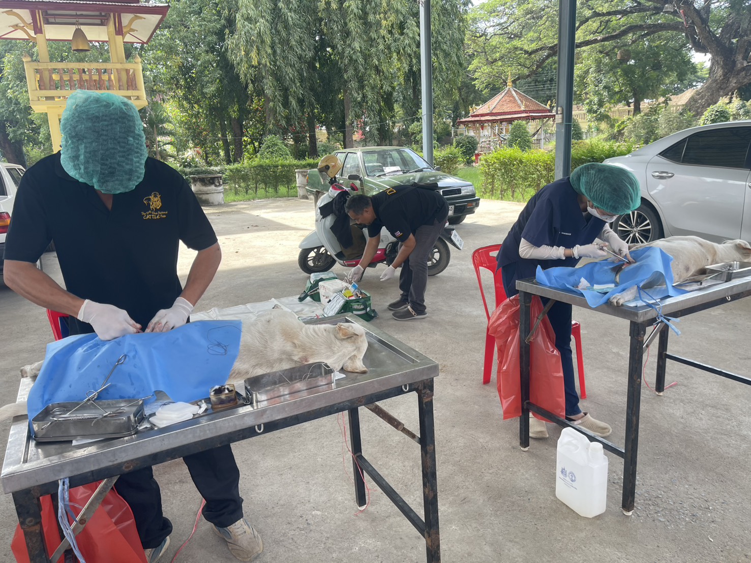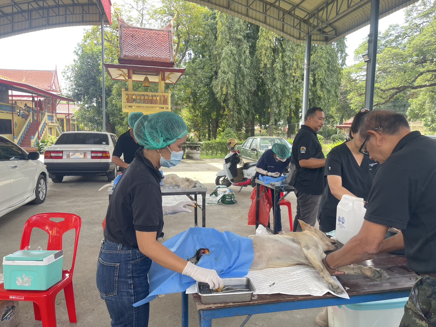 วันพุธที่ 26 พฤศจิกายน 2568 นายวิเชียร จารุเพ็ง ปศุสัตว์จังหวัดอ่างทอง ได้มอบหมายให้เจ้าหน้าที่ กลุ่มพัฒนาสุขภาพสัตว์ สำนักงานปศุสัตว์จังหวัดอ่างทอง, เจ้าหน้าที่สำนักงานปศุสัตว์อำเภอไชโย ออกหน่วยสัตวแพทย์เคลื่อนที่ผ่าตัดทำหมันสุนัขและแมว ณ วัดไชยภูมิ ต.ไชยภูมิ อ.ไชโย จ.อ่างทอง พร้อมทั้งฉีดวัคซีนป้องกันโรคพิษสุนัขบ้า และทำหมันสุนัขและแมวในพื้นที่