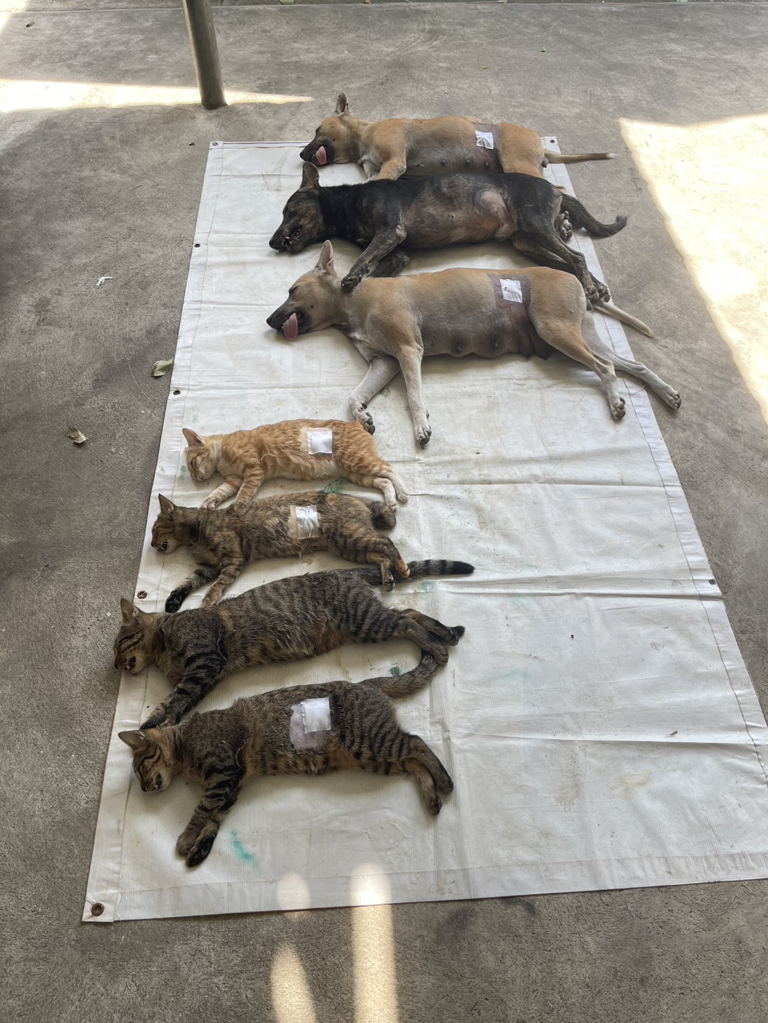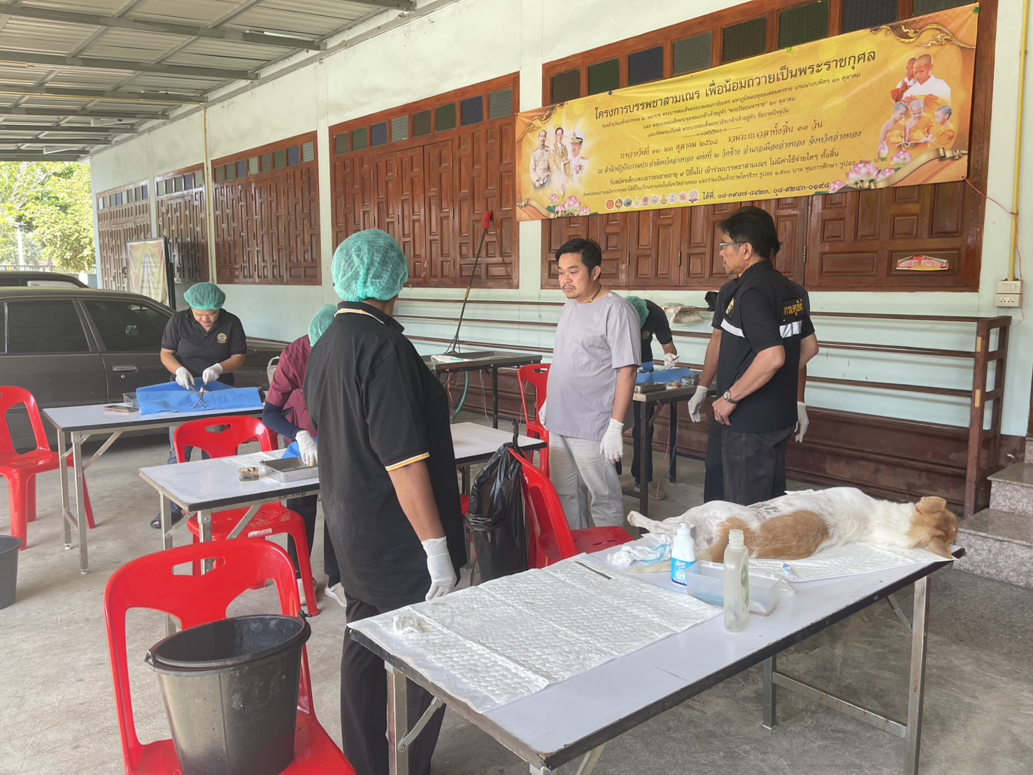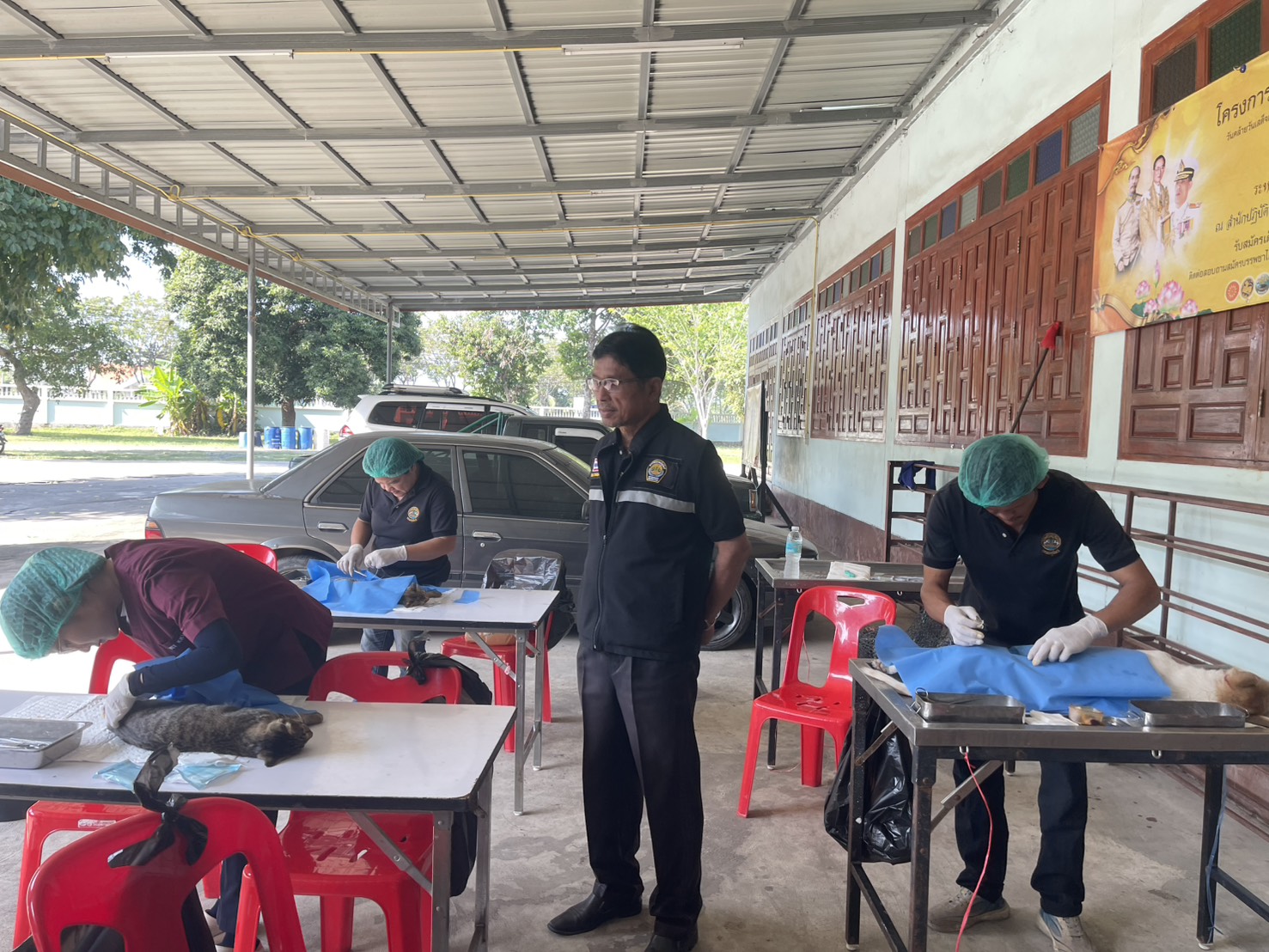 และทำหมันสุนัขและแมวในพื้นที่ สุนัขผู้ 1 ตัว สุนัขเพศเมีย 4 ตัว แมวเพศผู้ 1 ตัว แมวเพศเมีย 3 ตัว รวมทำหมันสุนัขและแมวทั้งสิ้น 9 ตัว