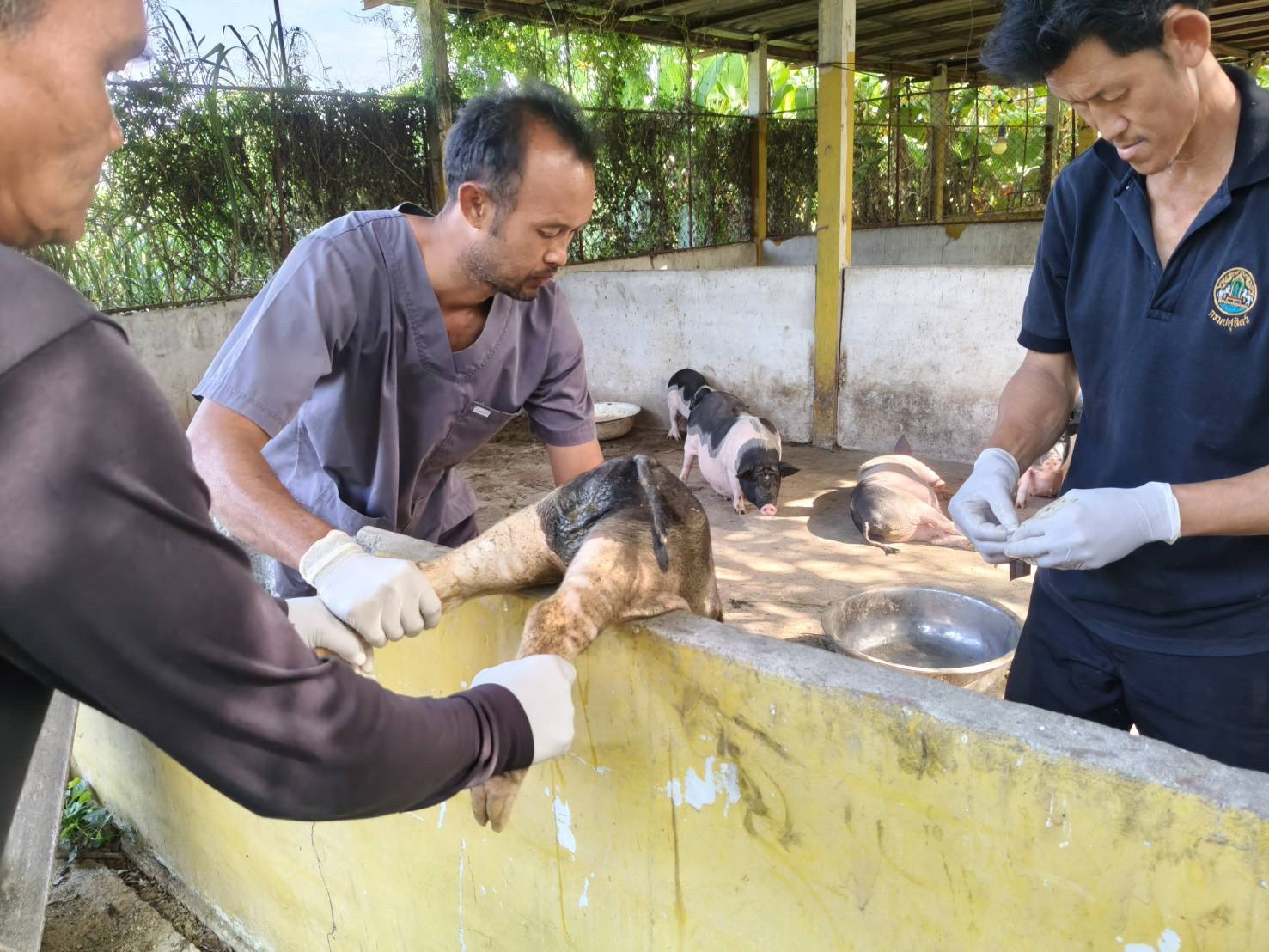 วันอังคารที่ 9 ธันวาคม 2568 นายวิเชียร จารุเพ็ง ปศุสัตว์จังหวัดอ่างทอง ได้มอบหมายให้เจ้าหน้าที่ กลุ่มพัฒนาสุขภาพสัตว์ สำนักงานปศุสัตว์จังหวัดอ่างทอง, เจ้าหน้าที่สำนักงานปศุสัตว์อำเภอเมืองอ่างทองออกหน่วยสัตวแพทย์เคลื่อนที่ผ่าตัดทำหมันสุนัขและแมว ณ วัดดอนกระดี่ ต.ป่างิ้ว อ.เมืองอ่างทอง จ.อ่างทอง พร้อมทั้งฉีดวัคซีนป้องกันโรคพิษสุนัขบ้า และทำหมันสุนัขและทำหมันสุกรในพื้นที่ สุกรเพศผู้ 8 ตัว สุนัขเพศผู้ 8 ตัวและสุนัขเพศเมีย 4 ตัว รวมทำหมันสุนัขและสุกรทั้งสิ้น 20 ตัว