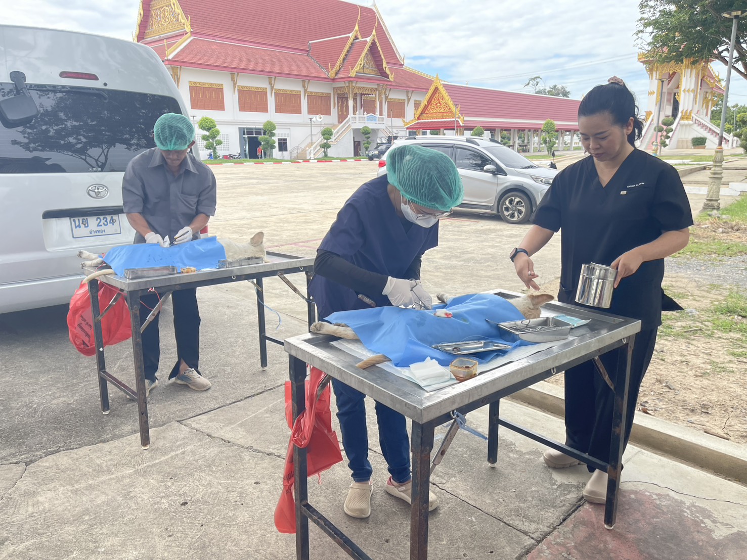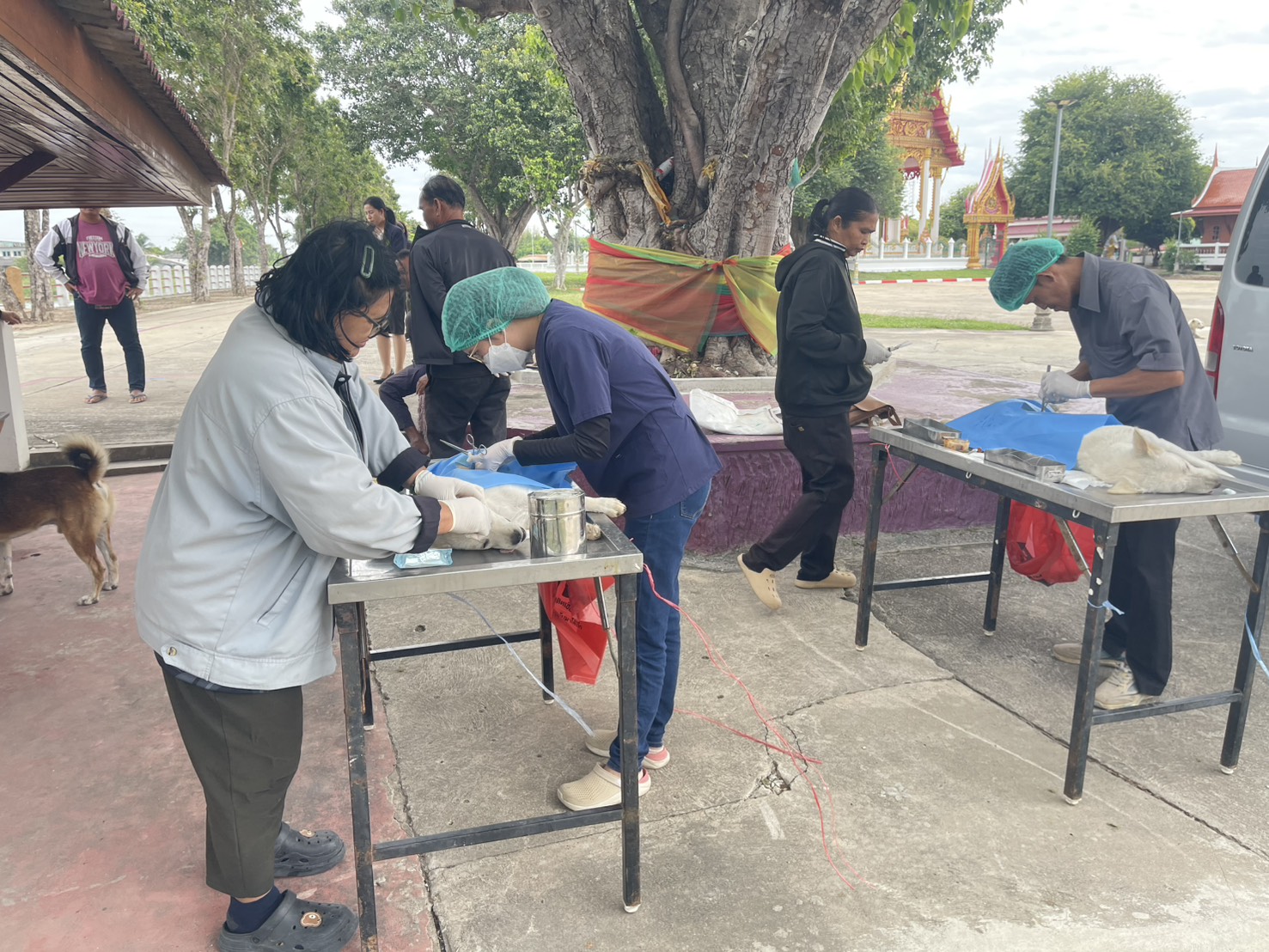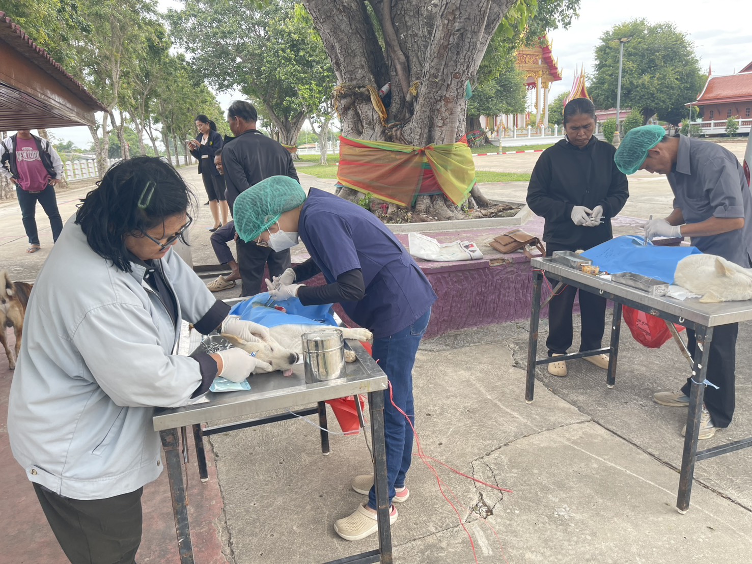 วันศุกร์ที่ 21 พฤศจิกายน 2568 นายวิเชียร จารุเพ็ง ปศุสัตว์จังหวัดอ่างทอง ได้มอบหมายให้เจ้าหน้าที่ กลุ่มพัฒนาสุขภาพสัตว์ สำนักงานปศุสัตว์จังหวัดอ่างทอง, เจ้าหน้าที่สำนักงานปศุสัตว์อำเภอวิเศษชัยชาญ ออกหน่วยสัตวแพทย์เคลื่อนที่ผ่าตัดทำหมันสุนัขและแมว ณ วัดตลาดใหม่ ต.ตลาดใหม่ อ.วิเศษชัยชาญ จ.อ่างทอง พร้อมทั้งฉีดวัคซีนป้องกันโรคพิษสุนัขบ้า และทำหมันสุนัขในพื้นที่วัดตลาดใหม่