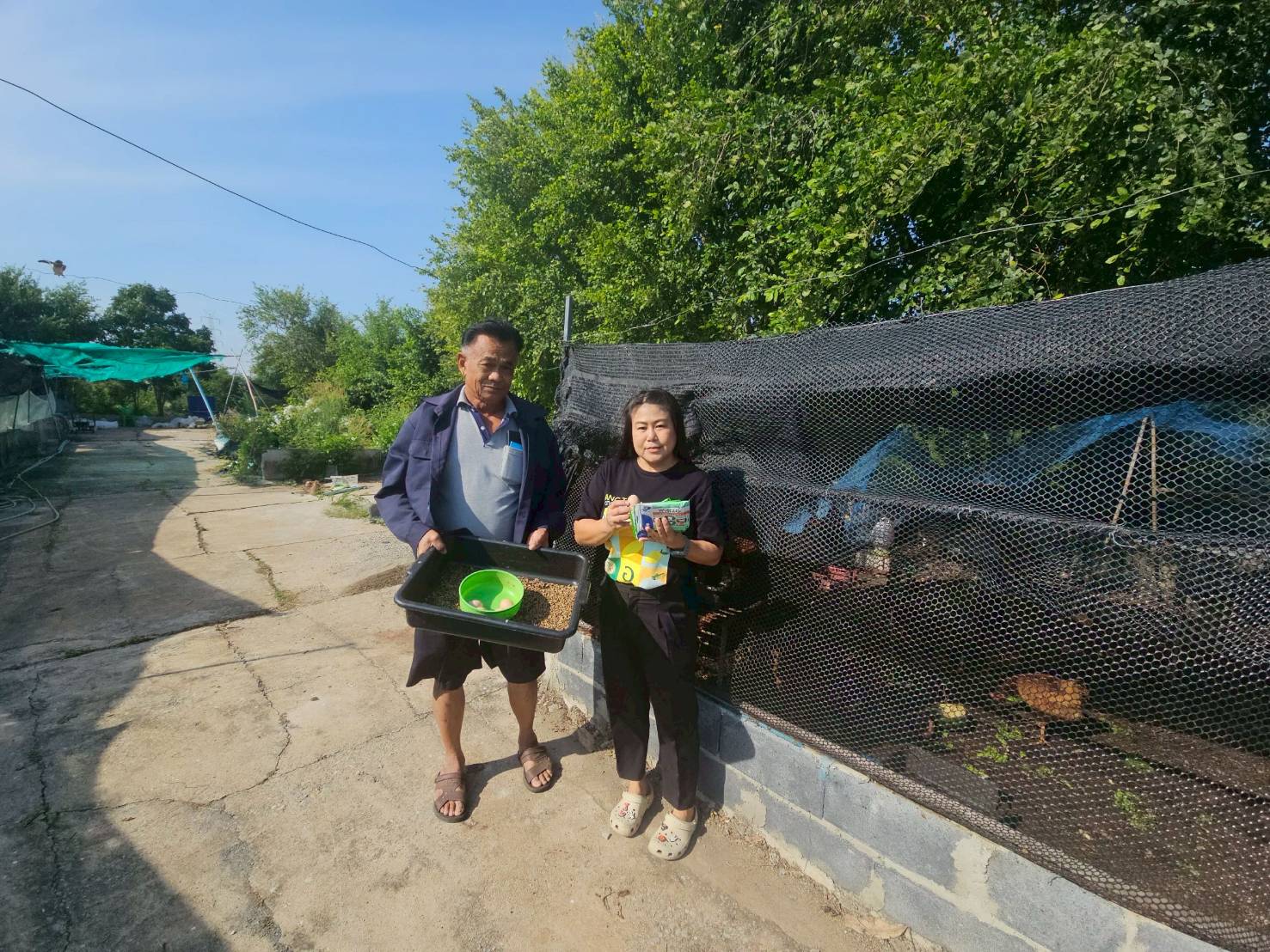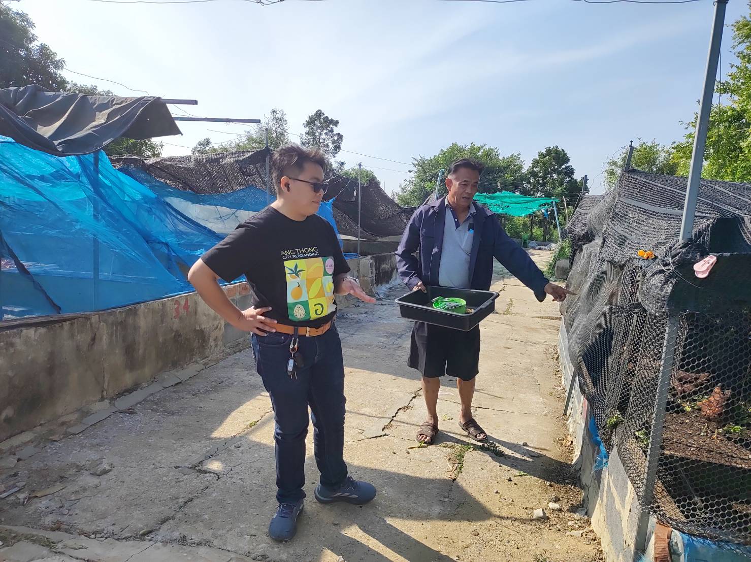 ซึ่งเลี้ยงไก่ไข่และเป็นเกษตรผสมผสานโดยใช้หนอนแมลงวันลาย BSF เลี้ยงไก่ไข่และปลาดุก เพื่อลดต้นทุนค่าอาหาร พร้อมทั้งมอบเวชภัณฑ์ยาต่างๆ เช่น ยาปฏิชีวนะ ยาถ่ายพยาธิ