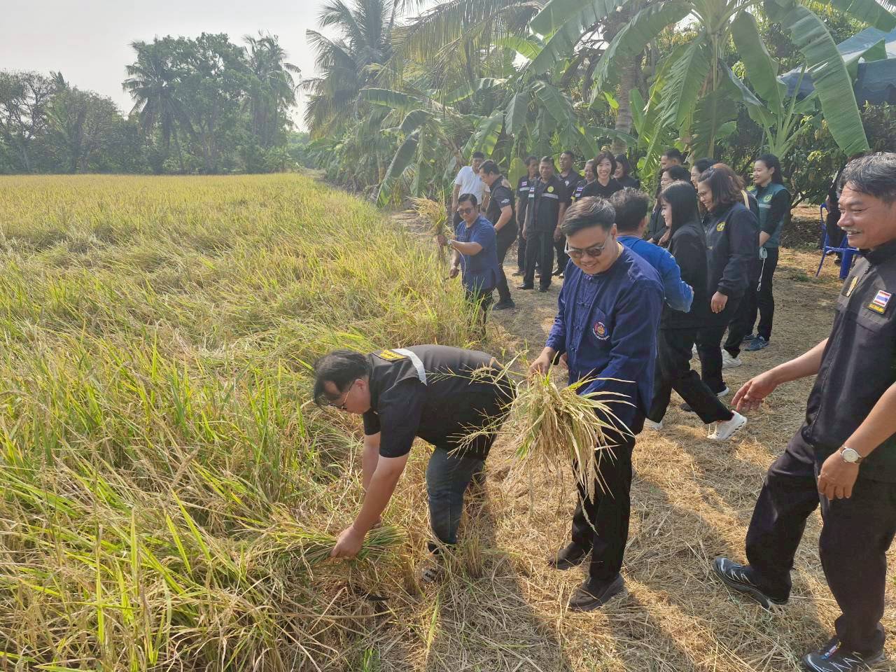 เจ้าหน้าที่ปศุสัตว์อำเภอแสวงหา เข้าร่วมกิจกรรมเก็บเกี่ยวข้าวและะติดตามผลการดำเนินงาน โครงการ"อ่างทองทำนา วิถีใหม่ ไร้ข่าวดีด ทำนา ปีละ 2 ครั้ง