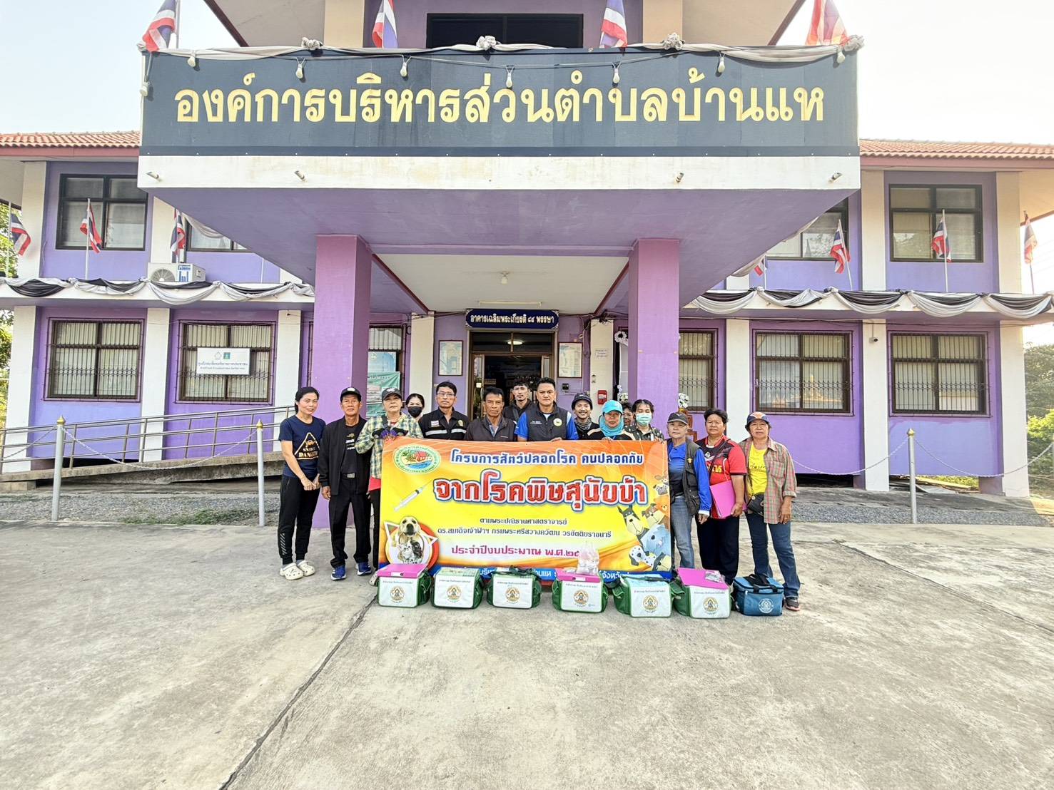 ร่วมกับ องค์การบริหารส่วนตำบลบ้านแห ออกรณรงค์ฉีดวัคซีนป้องกันโรคพิษสุนัขบ้า ตามโครงการสัตว์ปลอดโรค คนปลอดภัยจากโรคพิษสุนัขบ้า
