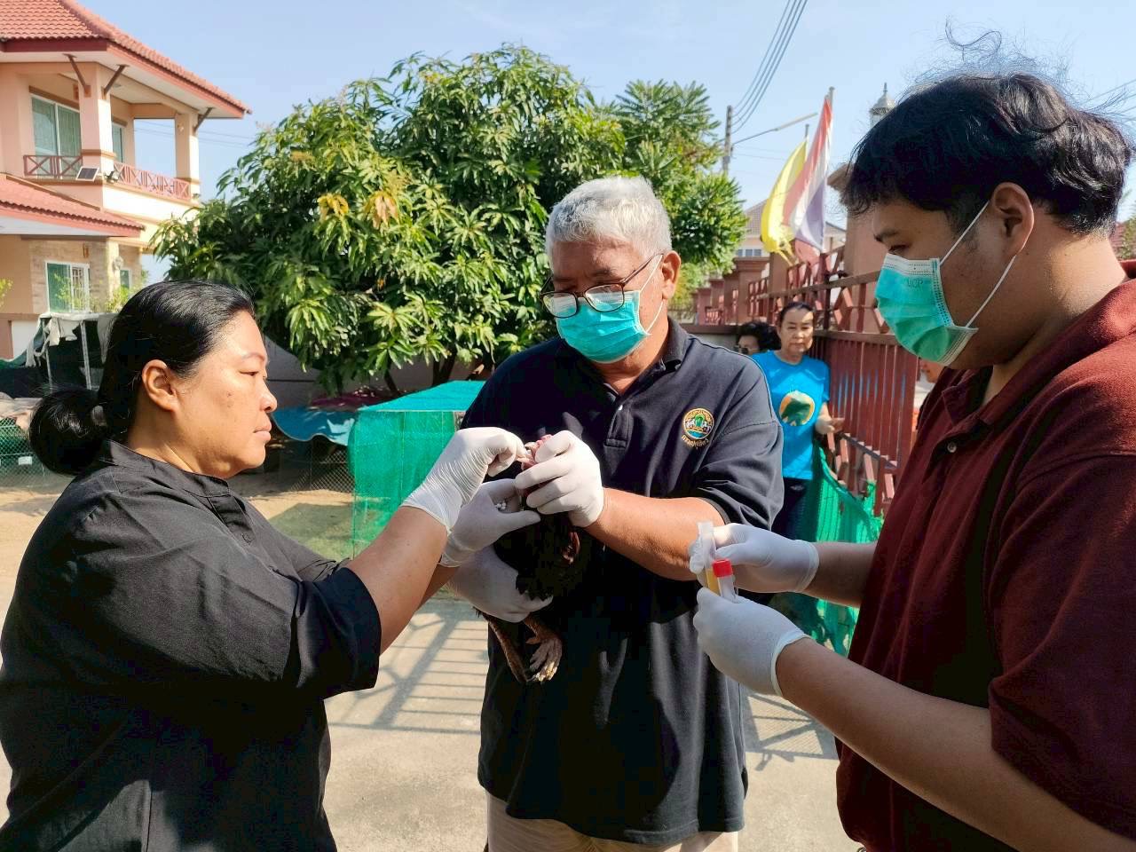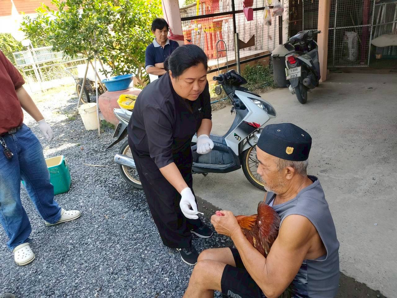 รักษาการในตำแหน่งปศุสัตว์อำเภอป่าโมก เจ้าพนักงานสัตวบาล และอาสาปศุสัตว์อำเภอป่าโมกออกพื้นที่ออกพื้นที่เก็บตัวอย่าง(swab) ในไก่พื้นเมือง เพื่อปรับระบบการเลี้ยงไก่พื้นเมือง