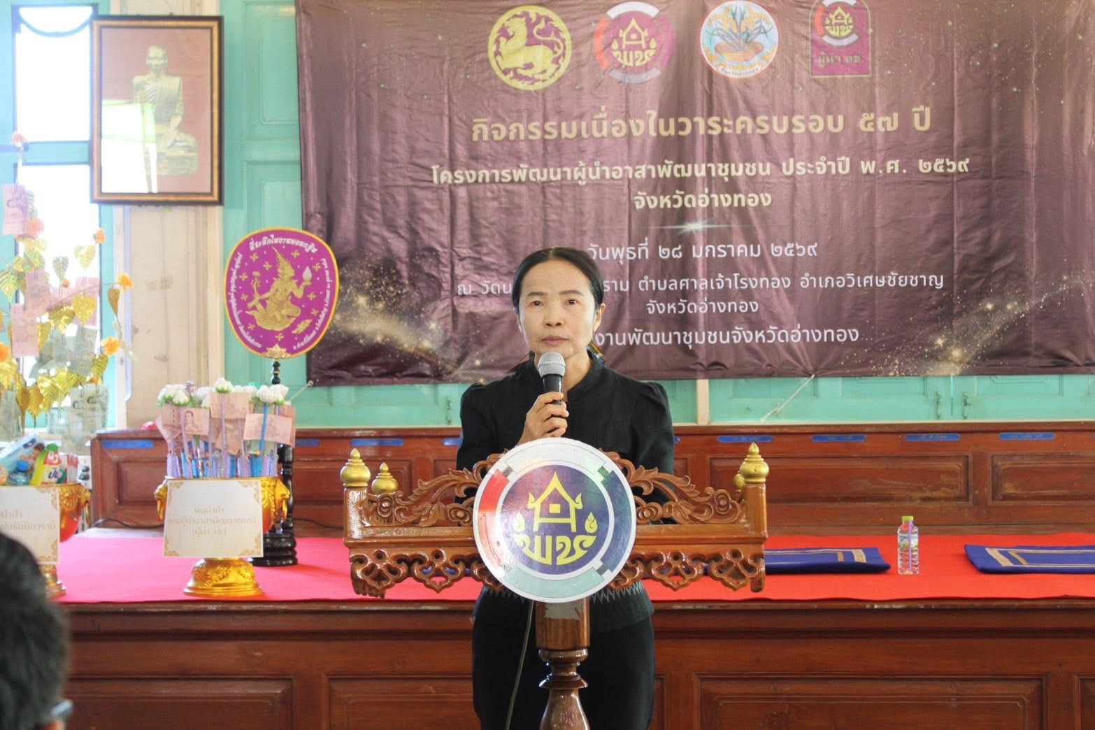 วันที่ 28 มกราคม 2569 เวลา 09.30 น. นายวิเชียร จารุเพ็ง ปศุสัตว์จังหวัดอ่างทอง มอบหมายให้ นางสาววธู ทดเพชร นายสัตวแพทย์ชำนาญการรักษาการในตำแหน่งปศุสัตว์อำเภอวิเศษชัยชาญ เข้าร่วมกิจกรรม โดยมีนางสาวสุกัญญา กุลสุวรรณ์ ปลัดจังหวัดอ่างทอง เป็นประธานในการจัดกิจกรรมเนื่องในวาระครบรอบ 57 ปี โครงการพัฒนาผู้นำอาสาพัฒนาชุมชน