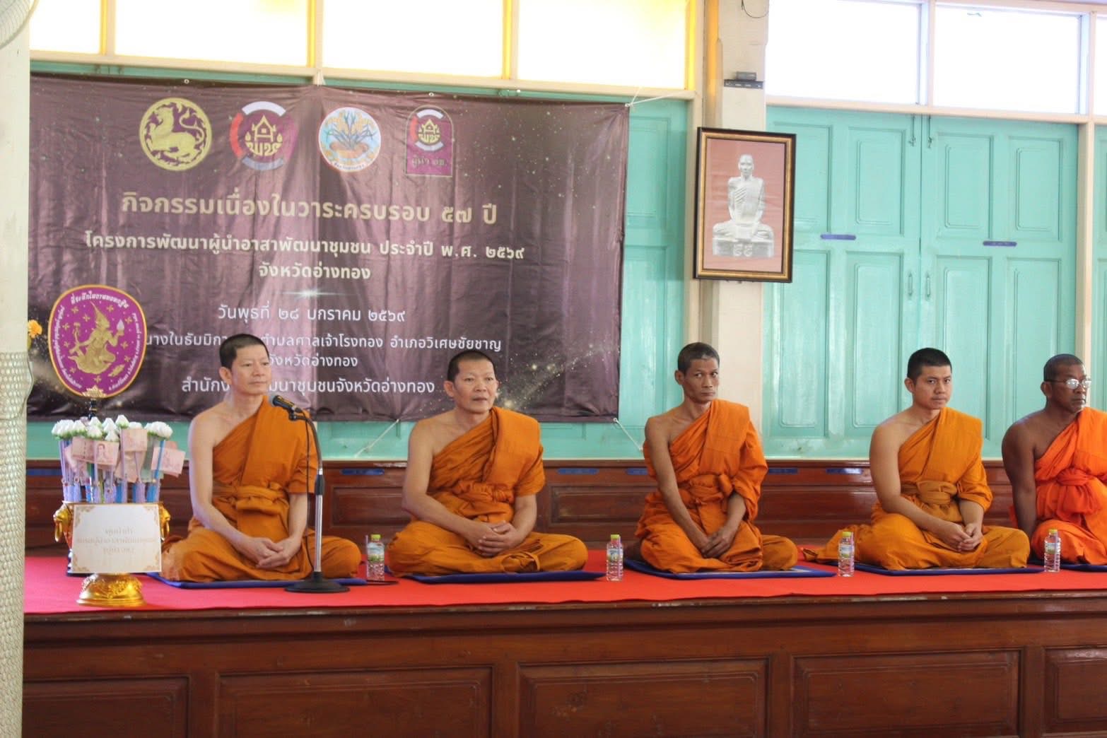 พัฒนาการอำเภอ พัฒนากร นักวิชาการ เจ้าหน้าที่สำนักงานพัฒนาชุมชนจังหวัดอ่างทอง/อำเภอ ผู้นำอาสาพัฒนาชุมชนทุกอำเภอ เข้าร่วมกิจกรรมฯ ณ ศาลาการเปรียญ วัดนางในธัมมิการาม ตำบลศาลเจ้าโรงทอง อำเภอวิเศษชัยชาญ จังหวัดอ่างทอง